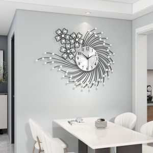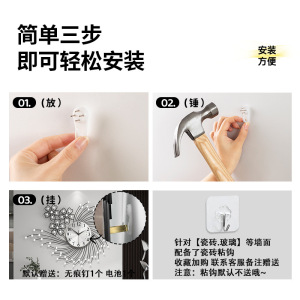 现代轻奢挂钟客厅高级感免打孔简约装饰静音时钟创意铁艺钟表挂墙