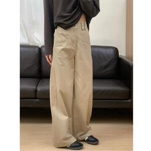2025新款摩卡色阔腿工装裤女设计感高腰宽松阔腿显瘦直筒休闲裤子