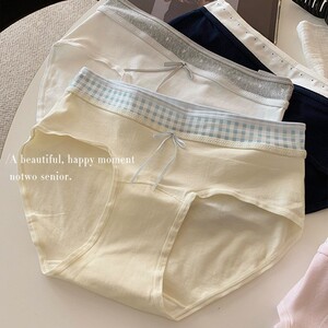 纯棉内裤加长抑菌裆10A女生内裤撞色拼接不夹臂透气中腰三角裤女