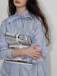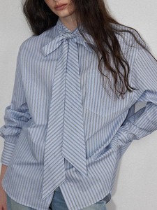 Lofi choose「优雅知识分子」法式系带条纹衬衫女春季宽松衬衣