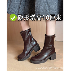 内增高马丁靴女英伦2025新款棕色复古厚底高跟小个子复古瘦瘦短靴