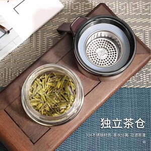 新品双层高硼硅玻璃杯加厚两段式茶水分离提绳便携银行节日送礼
