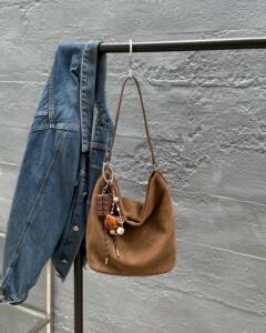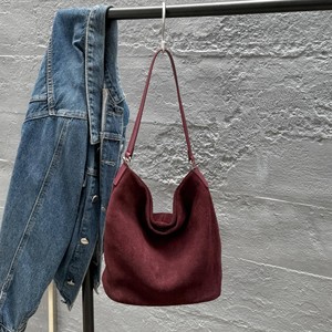 日韩新品磨砂牛皮单肩腋下水桶包大容量慵懒风日常出行通勤托特包