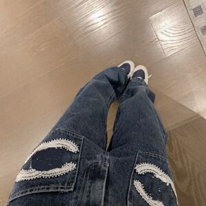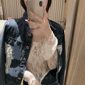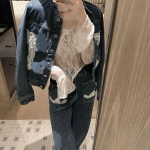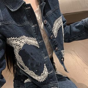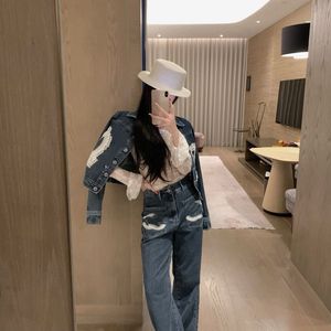2025早秋新款套装蕾丝花边双C 牛仔外套直筒长裤套装牛仔裤拼接新