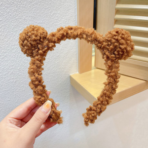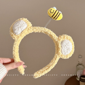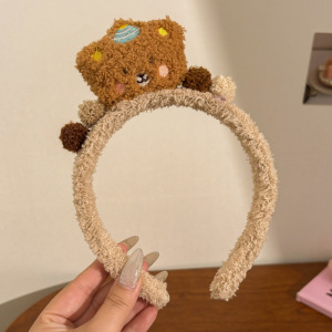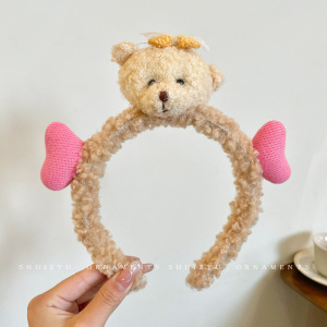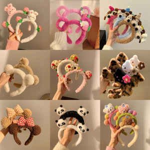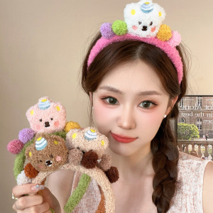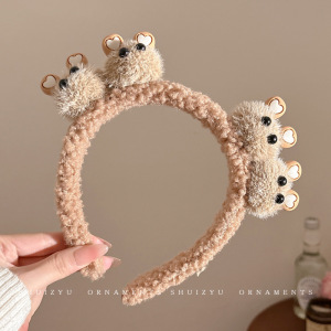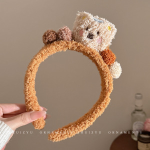卡通小熊毛绒发箍2025新款秋冬洗脸化妆压发头箍可爱甜美发卡头饰
