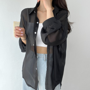 珠光冰丝防晒衬衫女夏季薄款开衫垂感罩衫衬衣外套上衣雪尼尔面料