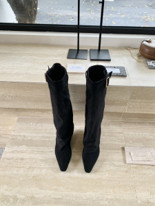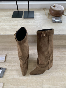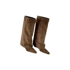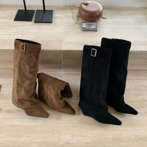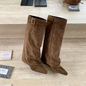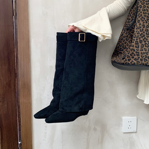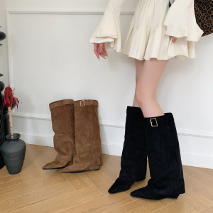 复古小众款显瘦尖头高筒裤管靴女靴子不过膝长筒拖地靴西部牛仔靴