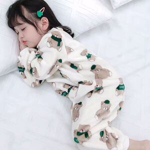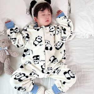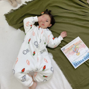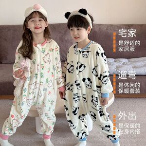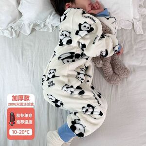 男女宝宝连体衣睡袋睡衣法兰绒秋冬季加绒加厚珊瑚儿童婴儿家居服