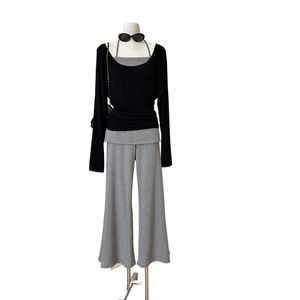 2025实拍早秋新款纯欲三件套长袖T恤+挂脖背心+屁帘休闲裤套装女