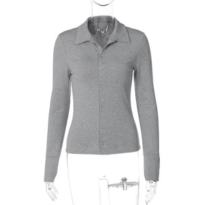 欧美热销开衫长袖纽扣上衣2025秋季新品修身翻领针织T恤外贸 批发