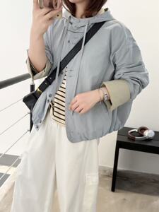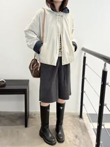 25年秋款外套长袖女宽松休闲韩版工装连帽外套上衣学院风撞色外套