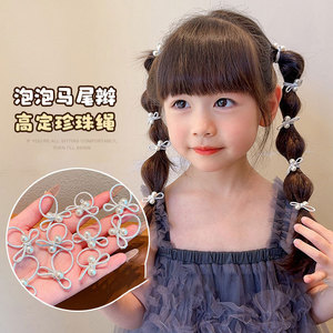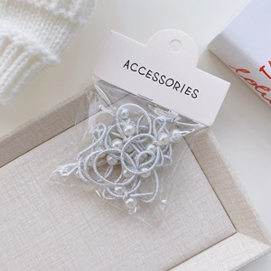 韩系银色蝴蝶结两颗珍珠皮筋袋装儿童高级感不伤发头绳百搭发绳女