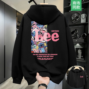 加绒印花上衣连帽卫衣美式时尚印花重磅纯棉情侣装卫衣连帽上衣潮