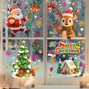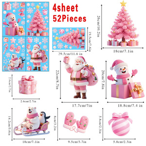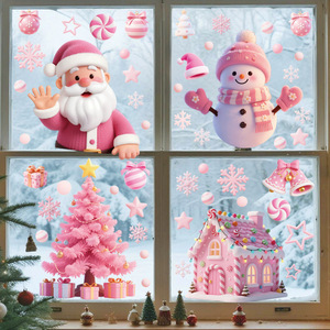 希音新款粉色圣诞节装饰品贴纸派对节日场景布置橱窗批发自粘