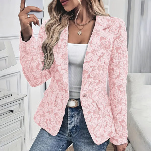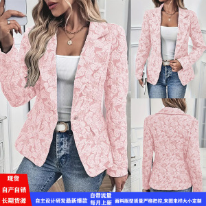 2025秋冬跨境亚马逊独立站eBay 欧美气质优雅压花长袖粉色小西装
