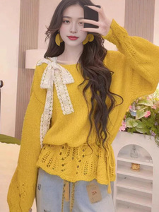甜美蝴蝶结镂空针织衫毛衣女早秋新款设计感小众宽松显瘦上衣外套