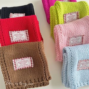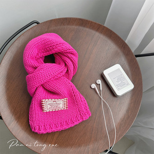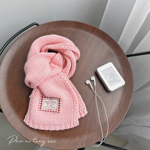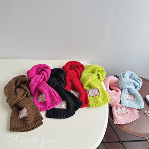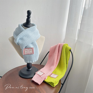 甜美儿童围巾秋冬新款保暖韩版红格子标百搭纯色宝宝针织防风围脖