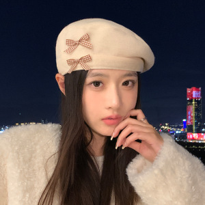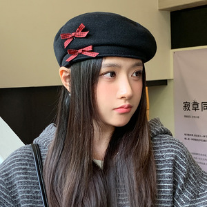 甜美可爱百搭蝴蝶结贝雷帽秋冬休闲韩版大头围画家帽时尚报童帽新