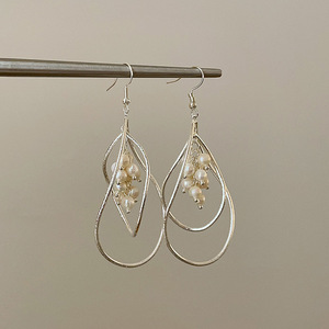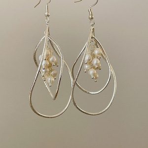 夸张独特不规则金属珍珠葡萄串耳勾女设计感小众个性时尚耳环耳饰