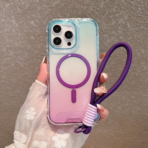 适用IP6PROMAX后盖磁吸手机壳缤纷三合一抗黄耐磨TPU渐变色配手绳