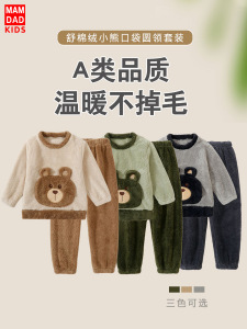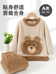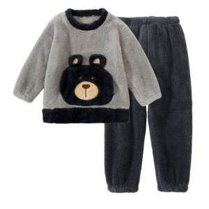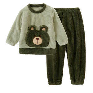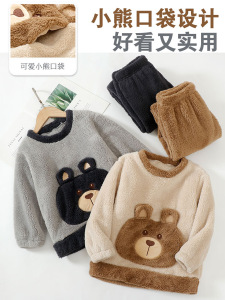 儿童法兰绒睡衣套装韩版男女童加绒加厚家居服中大童保暖睡衣套装