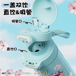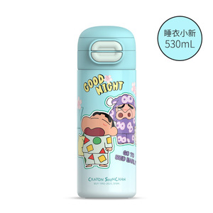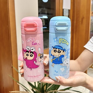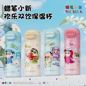 蜡笔小新保温杯带吸管直饮双饮喝水杯子男孩女孩学生上学保温水杯