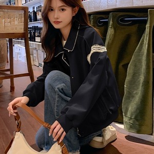 浅绿色休闲夹克外套女短款2025秋新款韩版宽松减龄小个子炸街上衣