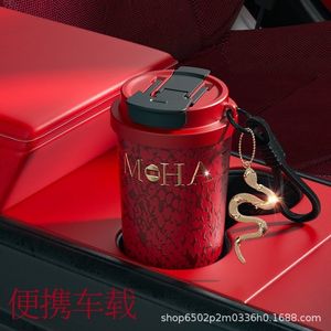 蛇年限定保温杯陶瓷新款吸管内胆水杯车载新年便携送礼轻奢高颜值