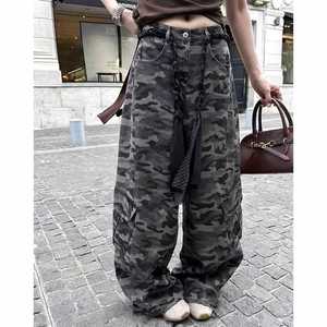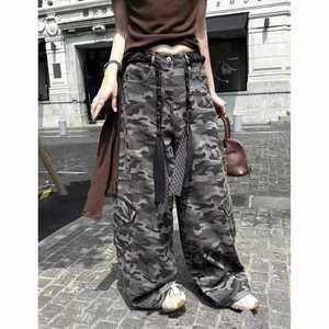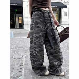 【官网图】洋气迷彩阔腿工装牛仔裤女新款设计感显瘦百搭阔腿弯刀