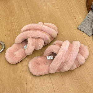 秋季新品皮毛一体居家毛毛拖交叉拖鞋一字拖