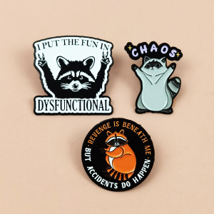 欧美英文语录合金胸针创意小动物狸猫可爱卡通徽章饰品配饰现货