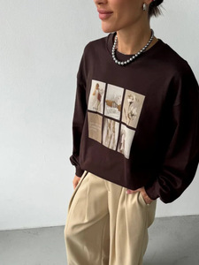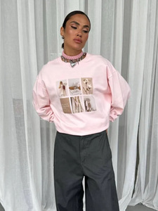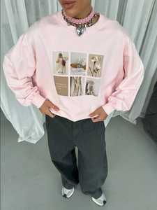 气质淑女洋气百搭潮流个性印花2025秋冬季欧美风圆领保暖卫衣上衣