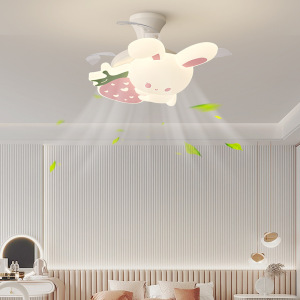 家用风扇灯奶油风卧室吸顶灯温馨浪漫卡通吊坠儿童房吸顶风扇灯