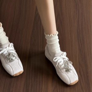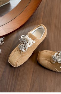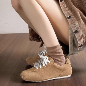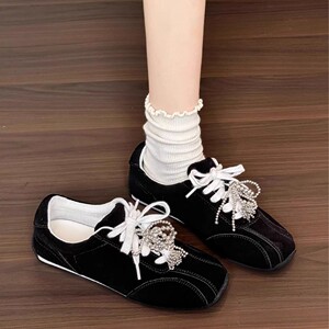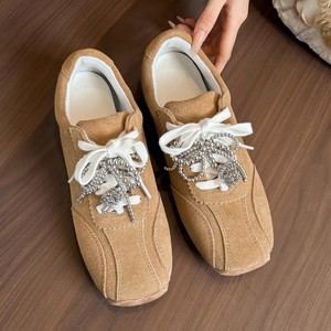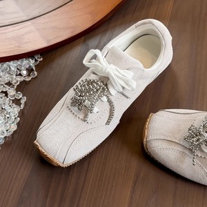 现货~真皮德训鞋软底阿甘单鞋小众休闲复古运动鞋磨砂珍珠蝴蝶结
