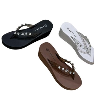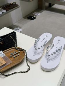 高跟夹脚人字拖2025夏新款厚底6CM橡胶防滑水钻沙滩百搭度假拖鞋