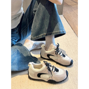 复古撞色拼接平底德训鞋女2025年新款百搭舒适透气休闲运动阿甘鞋