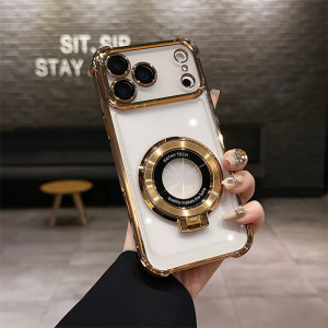 适用iPhone17PROMAX手机壳四角防摔苹果17透明电镀磁吸支架保护套