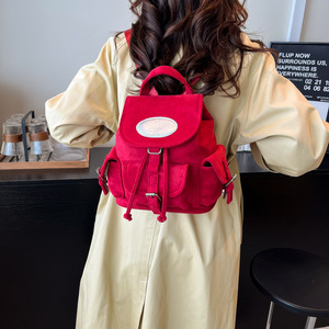 韩国复古多口袋双肩包包女2025早秋磨砂百搭休闲高级感通勤小背包