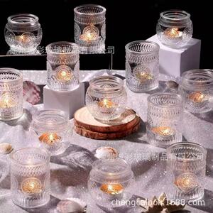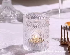 亚马逊爆款太阳花茶蜡杯复古烛台圆形玻璃蜡烛台香薰蜡烛空罐现货