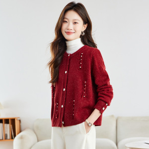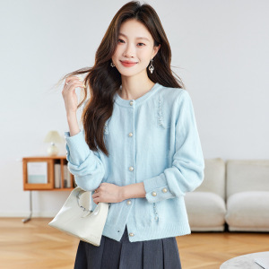 春秋外搭宽松短款洋气上衣休闲圆领毛衣外套本命年羊毛针织开衫女