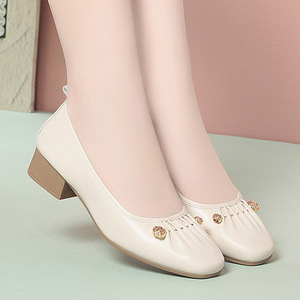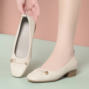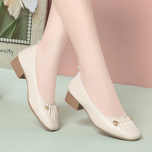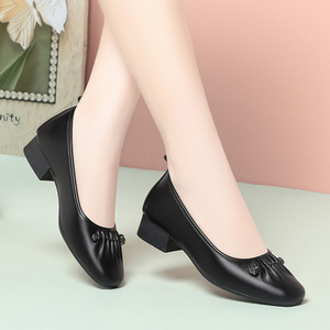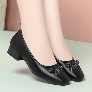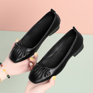 秋季妈妈鞋软皮软底舒适中年女鞋中老年皮鞋浅口低跟单鞋一件代发