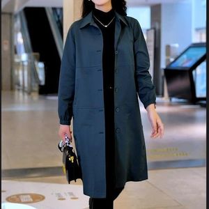 高档中长款风衣女秋季新款气质百搭时尚纯色POLO领宽松大码外套