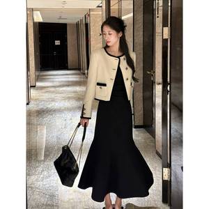 法式时尚套装裙女春秋新款气质名媛小香风长袖外套+连衣裙两件套