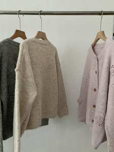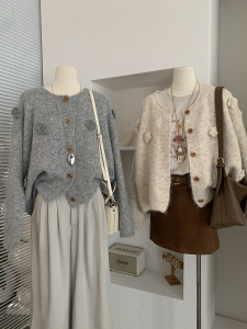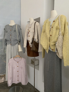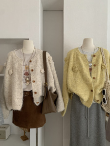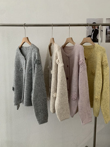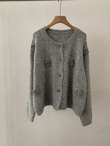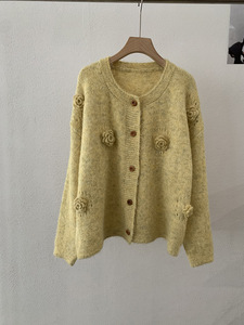 欧玛莱 立体花朵针织开衫外套秋季新款镂空宽松长袖毛衣外搭 4515