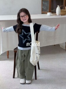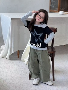 女童秋季时尚韩版假两件长袖t恤中小童印花长袖T恤2025秋季新款上