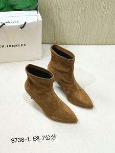 S738-1法式2025新款低跟短靴女鞋秋冬单靴绒面瘦瘦靴小裸靴子细跟