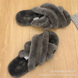 毛毛托皮毛一体居家棉拖一脚蹬交叉拖室内拖鞋
