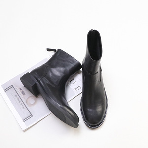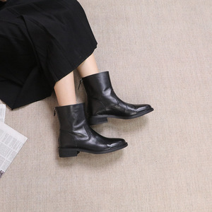 938-12025春秋冬款真牛皮厚跟拉链款设计百搭不挑人