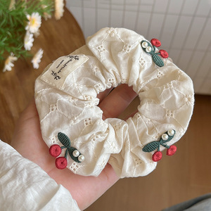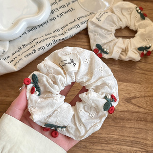 可爱红色小樱桃蕾丝大肠发圈女高级感百搭头饰扎头发大号春夏发绳