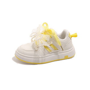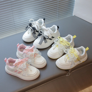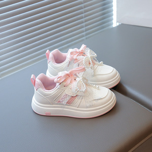 女童运动鞋2025秋款儿童蝴蝶结蕾丝珍珠板鞋女孩休闲鞋子